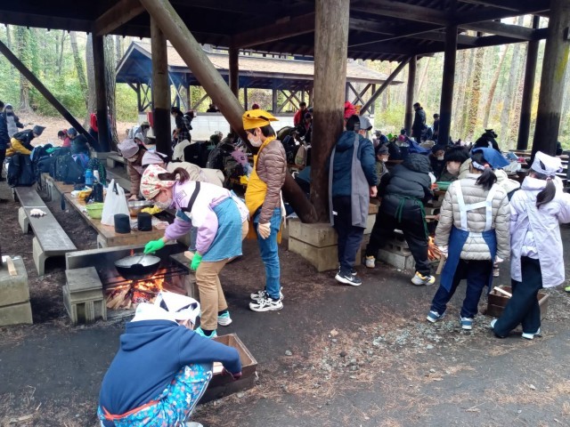 2日目の昼食は飯ごう炊さんでカレーライス作り。