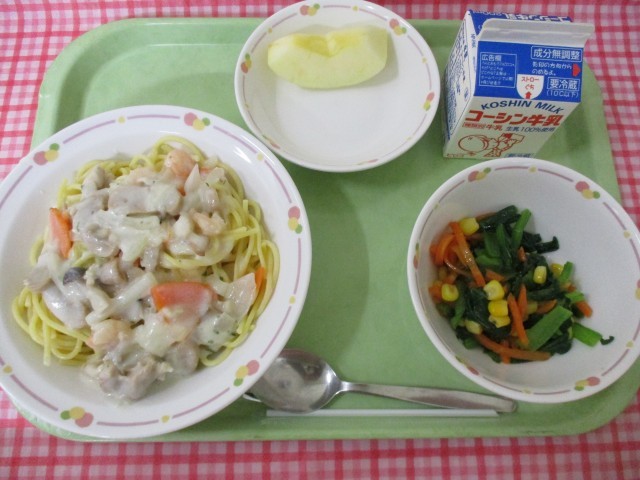 今日のサラダには小松菜が入っていました。小松菜は、東京都江戸川区小松川という場所で生まれた野菜です。給食の小松菜を作っている農家の方は、給食で一年中小松菜が食べられるように、種を植える時期を少しずつずらしているそうです。小松菜はカルシウムが豊富で栄養価が高い野菜ですので、積極的に取り入れましょう。