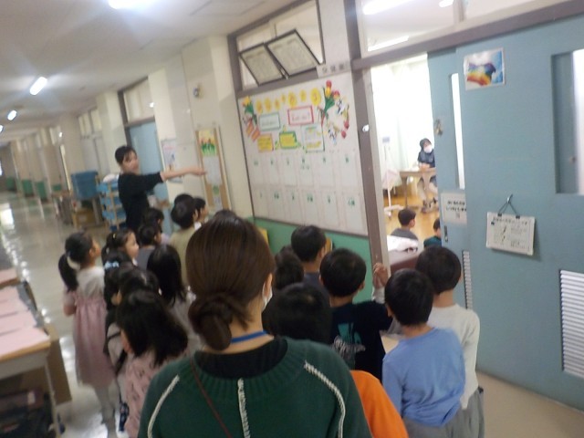 今日は担任の先生に連れられて学校探検をしました。