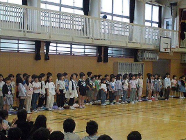 各学年の歓迎の出し物、1年生から感謝の出し物があり
