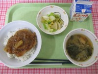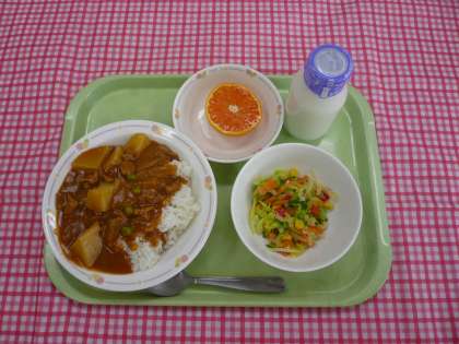 *ハヤシライスは、牛肉や野菜をハッシュ(薄く切る)して、煮込んだものです。ハヤシライスという名前の由来は、ハッシュド・ライスからハヤシライスになったと言われています。給食では豚肉を使っています。