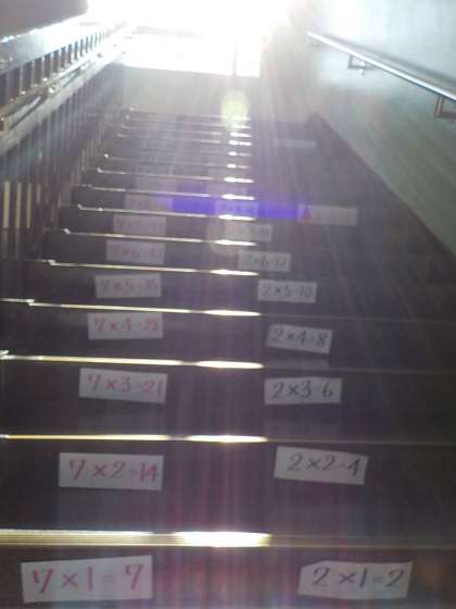 毎朝、休み時間など、階段を上りながらかけ算九九を唱えて励んでいます。