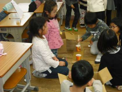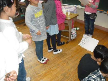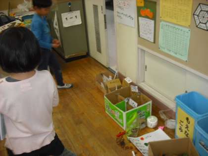 ドングリ、まつぼっくり、落ち葉等と身の回りの材料を使ってお店屋さんをします。