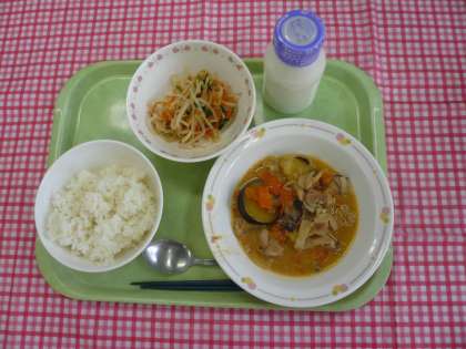 *今日は朝鮮半島の料理です。タッカルビは、鶏肉と野菜などを甘辛いコチュジャンをベースにしたタレをかけて炒めた料理です。ナムルはもやしなどの野菜をゆでて調味した料理です。タッカルビは子供たちが大好きな献立です。