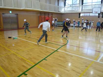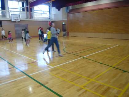 体育館では、「線おに」をしたり、「てんか」をしたりしました。