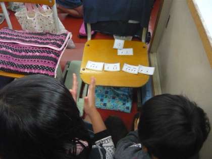 2人組でつなげて、手拍子したり、実際に太鼓をたたいて
