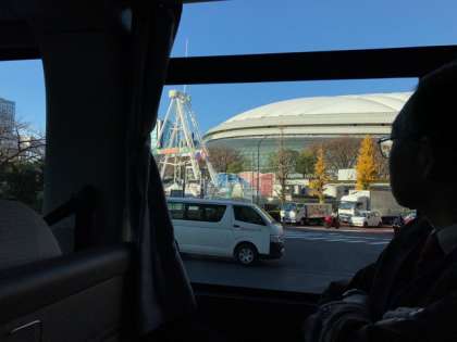 外は天気が良く、社会科見学日和です。今、東京ドームシティを通り過ぎました。