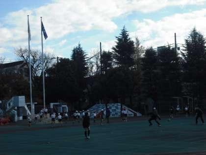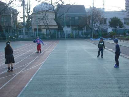中休みの様子です。 冬晴れの空の元、元気な子供たちです。