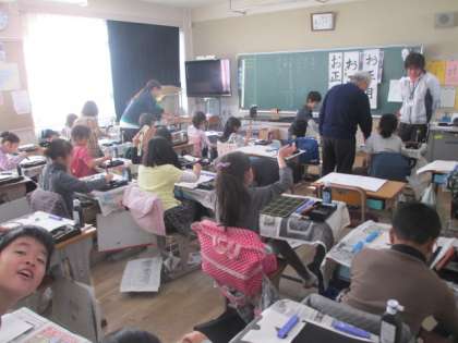 今日は、3、4年生が毛塚先生に教わります。