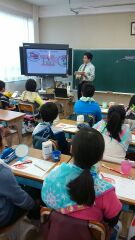 歯科校医の高橋先生から、歯磨き指導を受けています。