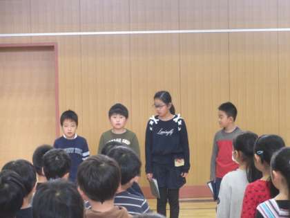 2年生が今学期に自分たちが努力したことを発表しました。2学期は運動会、音楽会があり、児童のがんばりを多く見ることができました。