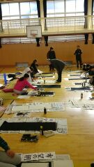 今日、5年生は毛塚先生を講師にお招きして、席書会を行いました。