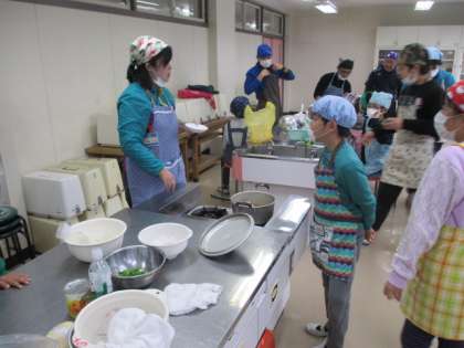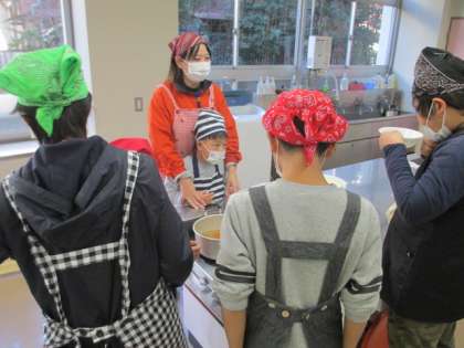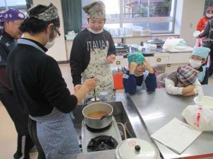 ピザトースト、コンソメスープ、フルーツポンチを作っています。