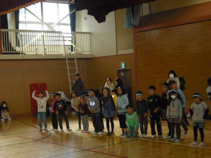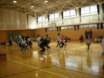 PTAのミニ運動会を行っています。 白熱した試合が展開されています。