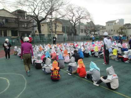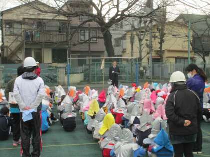 予告無しの避難訓練でしたが、 慌てることなく校庭に避難することができました。