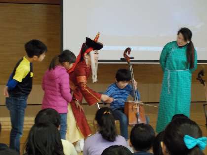 モンゴルの方の生活や文化、馬頭琴という楽器のことなどを知り、国語の「スーホの白い馬」の世界が目の前に飛び出してきたような時間になりました。