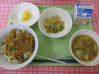 *青菜チャーハンの青菜は小松菜を使っています。小松菜は東京の江戸川区の小松川というところで、明治になってから栽培されました。小松川の名をとって「こまつな」と名付けられました。小松菜のように緑色の濃い野菜には、血液中のコレステロールを調整し、病気から体を守る働きがあります。