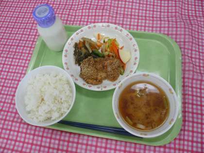 *今日の鶏肉料理は下味をつけた肉にゴマをたっぷりかけて焼いてあります。ゴマはエジプトが原産地で中国を通り、日本にやってきました。骨や歯の健康を守るカルシウムが豊富で大変優れた栄養食品です。