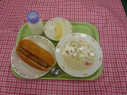 *今日は世界の料理特集でアメリカの料理です。ホットドッグはハンバーガーと並んでよくアメリカ人が食べているイメージがありますが、ドイツのフランクフルトで生まれました。1860年にアメリカに伝わった時には、長い形からダックスフントを連想し、ダックスフント・ソーセージと呼ばれていましたが、新聞のイラストでパンにダックスフントが挟まっている絵を描き「ホットドッグを食べよう!」というキャッチコピーをつけ、有名になりました。