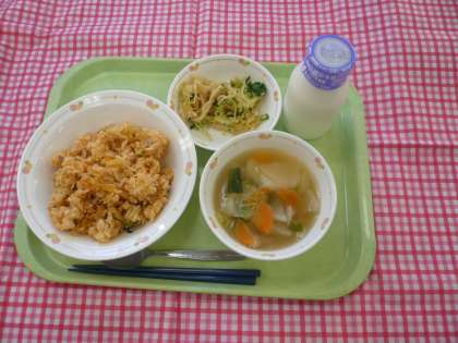 *チンゲンサイサラダはチンゲンサイとキャベツと切り干し大根をドレッシングであえてあります。ドレッシングには、干しエビ、ザーサイのみじん切りとしょうゆ、酢、砂糖、ごま油を使っています。いろいろな味がしておいしいサラダです。