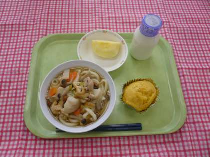 *のっぺ汁にうどんを入れてあります。のっぺ汁は鶏肉や根菜類の野菜、コンニャク、キノコなどをだし汁で煮て、醤油で味をつけ、片栗粉でとろみをつけてあるので、冷たくならず寒くなってからの汁物としては最高です。