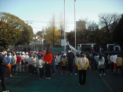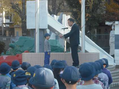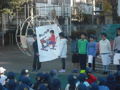 6年生が元気よく挨拶をしました。表彰と保健委員会からのお知らせがありました。