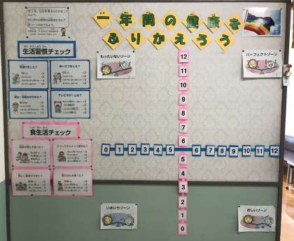 自分の生活と照らし合わせ、1年でどのぐらいできることが増えたのか参考にしてもらいたいです。そして、春に季節が変わる中でもう一度生活リズムについて、ふりかえってもらうことが目的です。