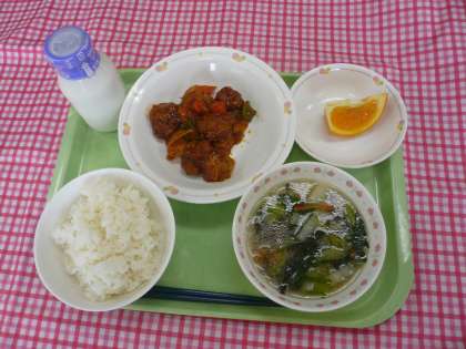 *今日のスープは春雨の入ったスープです。春雨は中華料理で良く使われる食材です。春雨と似たものにビーフンがありますが、大きな違いは、原料にあります。春雨は緑豆やじゃがいもなどのでんぷんで、ビーフンはうるち米のでんぷんです。春雨は水やお湯で戻した後に調理します。食感がとてもいいですね。