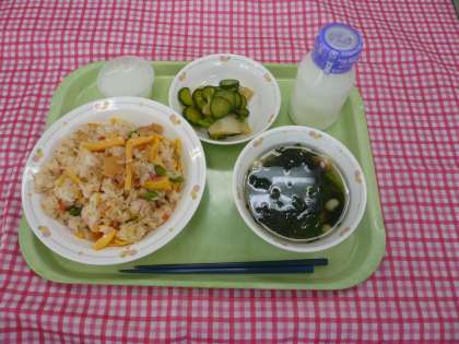 *今年の桜はいつもよりとても早く咲きました。今日は桜の花をイメージしたちらしずしです。すしめしの上の黄色、ピンク、緑などがとても色鮮やかで目を楽しませてくれます。すしめしに入っているかんぴょうは、夕顔という植物の実を紐状にむき、干して乾燥させた物です。