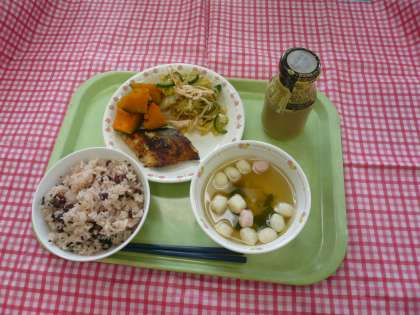 *明日は西巣鴨小学校の105周年の開校記念日です。今日はそれをお祝いしてお赤飯の献立です。西京焼きとは魚を白味噌に漬け込んで焼いた物です。西京味噌という京都で作られる甘い白味噌に酒とみりんをといて魚を漬け込んだ物です。