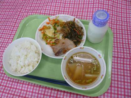 *今日は人参を使ったサラダです。人参は給食で毎日のように使われています。人参の歴史は古く2000年前にさかのぼるほど古く、日本には江戸時代に伝わりました。人参はカロチンが多く体内でビタミンAになります。目や皮膚のガードマンです。