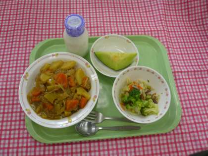 *今日のデザートはメロンです。メロンの栽培は古代エジプトからあり、中国では秦の時代に栽培の記録があります。日本には二千数百年前に渡来し明治初期に、アメリカから露地栽培のメロンが伝わり大正時代に広まりました。