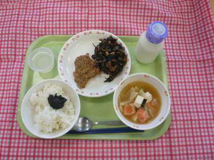 *今日は1年生の親子給食会でした。みんな楽しそうに給食を食べていました。家庭の食事とは違う食事の様子を見ていただき良かったと思います。