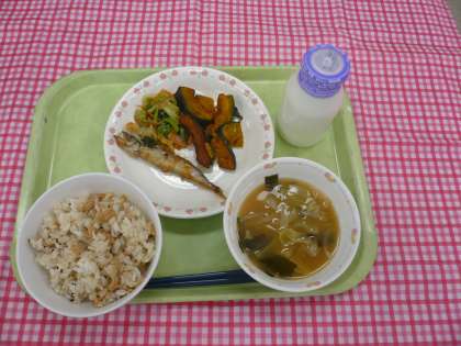 *こぎつねごはんは油揚げを甘辛く煮たものをごはんに混ぜています。油揚げはきつねの大好物で色も似ていることからこの名前がついたそうです。でも本当はきつねは肉食なので油揚げは食べないそうです。
