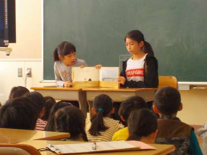 10月22日(月)から11月2日(金)まで秋の読書旬間がありました。10月25日(木)は読書ボランティアの保護者による読み聞かせ、11月1日(木)は1〜3年生は図書掲示委員会による読み聞かせ、11月2日(金)は教員による「おはなしひろば」を実施しました。「おはなしひろば」では事前に子供達が選んだ本の教室へ移動し、初めて読む教員がわかる楽しみもありました。本も笑いあり、しんみり静かに聞く様子あり、本の内容をじっくり聞き楽しむ様子が見られました。終わってから和やかに教室へ帰っており、本の力を感じました。冊数によってしおりや3冊貸出券をもらえます。読書旬間は終わりますが、1年間の目標に向かってこれからも読書に取り組んで欲しいです。