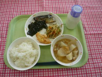 *今日の給食は宮城米を使った給食です。豊島区は平成17年10月1日に宮城県と相互交流宣言を行いました。宮城県から送っていただいたひとめぼれを給食でいただきました。おかずには、宮城特産のサンマや、笹かまぼこの料理やおくずがけをだしました。