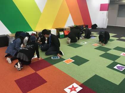 プログラミングや道案内を英語で学習しました。最後に振り返りをして体験を終了しました。