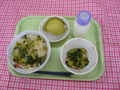 *今日から3学期の給食が始まりました。1月7日は七草の節句といわれます。春の七草を食べて不足しがちなビタミンをとって、風邪を引かないようにという行事です。春の七草は「せり、なずな、ごぎょう、はこべら、ほとけのざ、すずな、すずしろ」のことをいいます。野菜たっぷりのうどんでした。