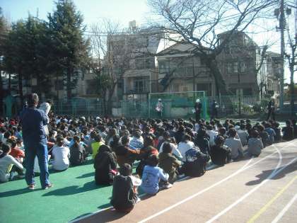 予告無しの理科室からの火災を想定した避難訓練を行いました。