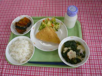 *はんぺんの間にチーズをはさんで、フライにしました。はんぺんは白身魚のすり身に山芋などを加えて成形してゆでたものです。卵白や調味料を加えて練り込んでふんわりした食感を出しています。