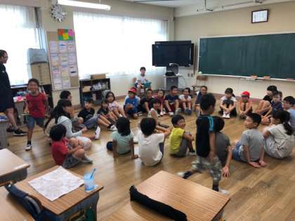 高学年のあじさい班の班長が、教室での楽しい遊びを考えて、準備、会の進行をしてくれました。