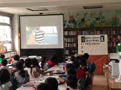 犬の心臓の音を聞く体験や、映像を使って仕草から犬の気持ちを考える学習など、楽しく犬のひみつについて紹介していただきました。