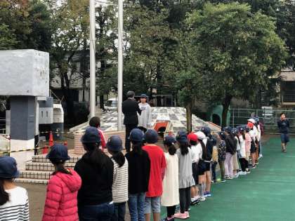 11日の全校朝会では、書写コンクール学年代表児童の表彰がありました。