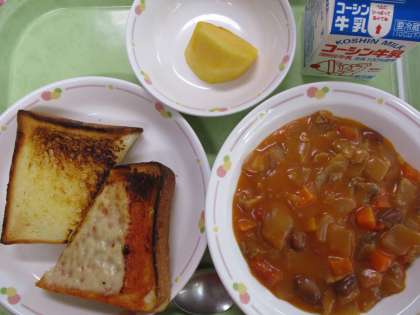 今日は、パンを2種類作りました。パンが好きな子が多いようで、給食前から「今日は好きなものばっかりです。」と楽しみにする声や、給食時間中は「チーズトーストおいしいです。」など感想をたくさん聞くことがでました。