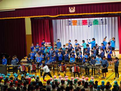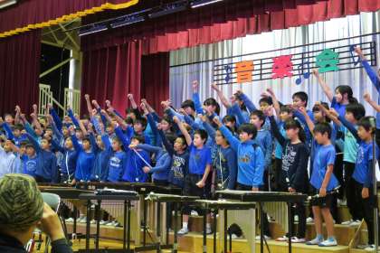 5年生のパワーのある歌声と、高音の美しい響き。そして、ノリノリの合奏で会場全体が大盛り上がり!