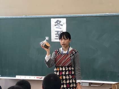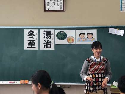 22日(日)が冬至ということで、冬至にまつわる給食のメニューについて話していただきました。
