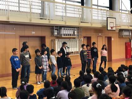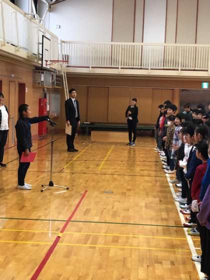 代表児童は、2年生の小山君。3学期に向けて頑張りたいことを、身振りを交えて熱く伝えていました!