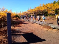 10/30(木)富士山五合目、奥底のハイキング。天気が良くて、冠雪したばかりの富...
