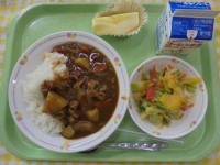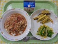 トマトチキンカレーイタリアンドレッシングサラダりんご牛乳今日は、大人気のカレーの...