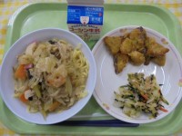 長崎ちゃんぽんひじきのサラダさつまるくん牛乳今日は、長崎県の郷土料理より、ちゃん...